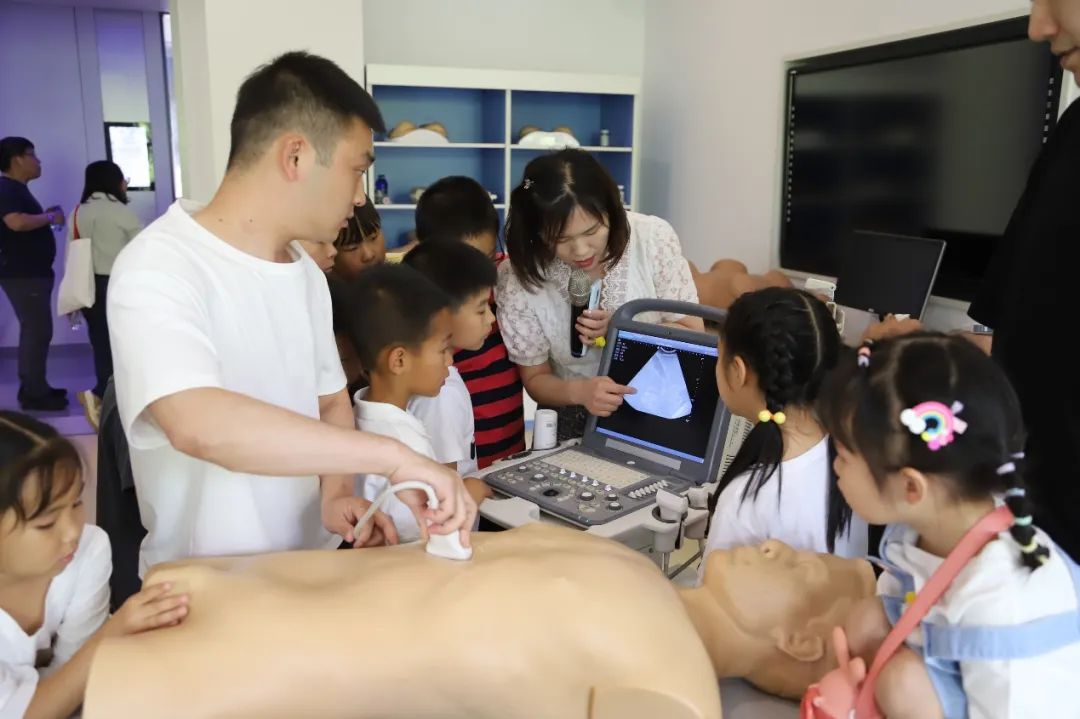 小朋友们集合参观天堰医学模拟中心,深入了解企业文化,探索医学奥秘