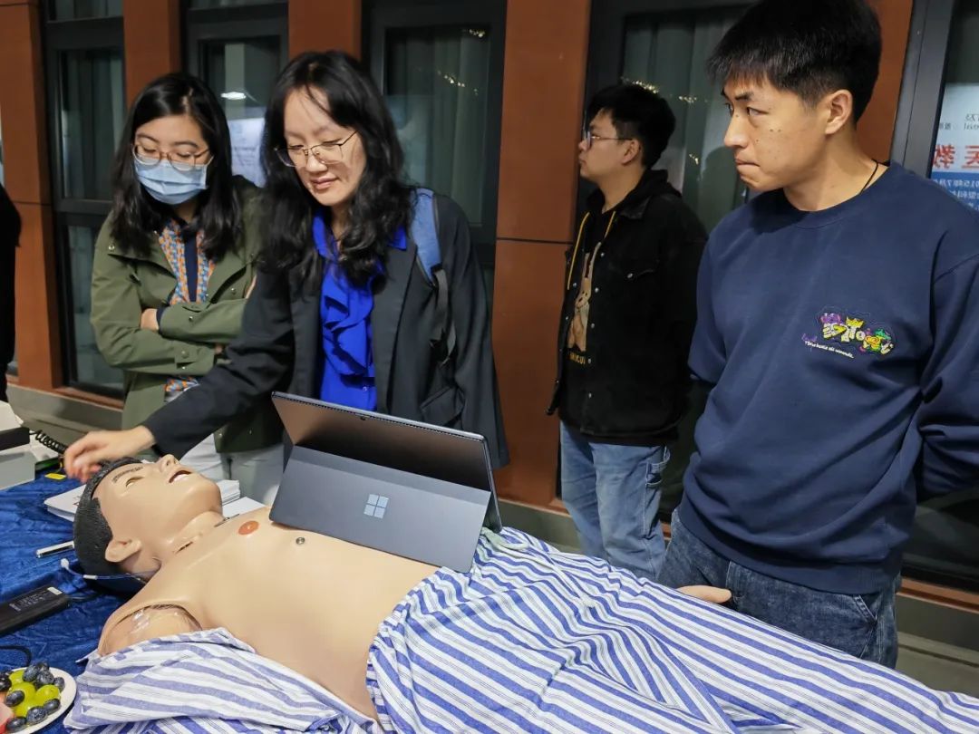 本次展会天堰科技携智能急危重症模拟训练系统参展,智能急危重症模拟训练系统可模拟多种急危重症相关症状体征,可将各种急救及重症抢救技能融合到智能病例系统,进行多场景仿真训练与考核。在展会中智能急危重症模拟病人向参展人员模拟了“急性心肌梗死合并心力衰竭”、“创伤失血性休克”、“急性呼吸窘迫综合征”等急危重症体征,吸引了众多人员停驻展位交流沟通,并进行一系列医学操作。